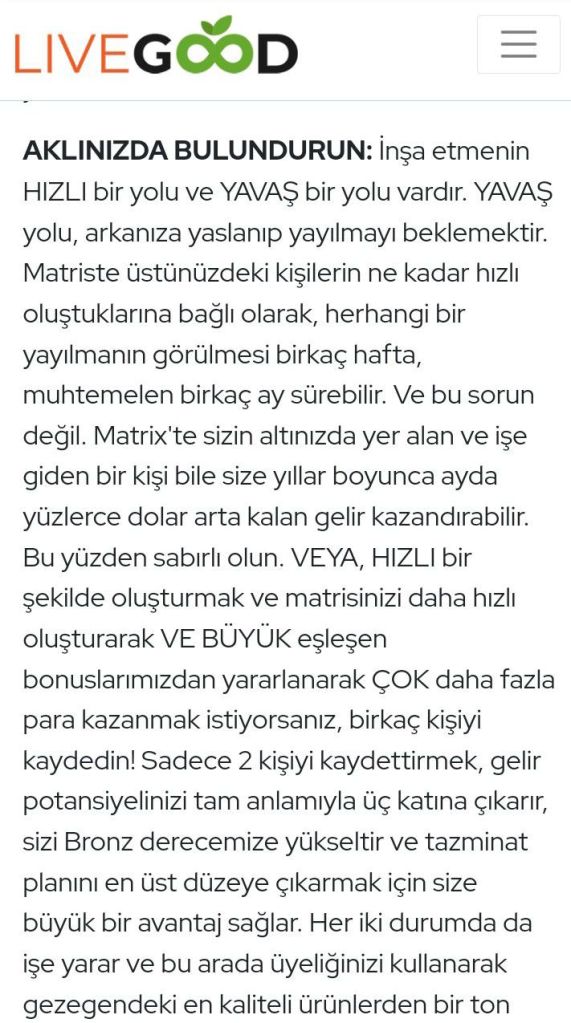 İyi yaşa Yazan:eminkarhan28 Ağustos 20241 Eylül 2024Yazı kategorisi anasayfa https://www.livegoodtour.com/Emin?SOURCE=ABC tavsiye ticaretiTweet Telegram'da paylaşmak için tıklayın (Yeni pencerede açılır) Telegram Daha fazla Arkadaşınıza e-posta ile bağlantı göndermek için tıklayın (Yeni pencerede açılır) E-posta WhatsApp'ta paylaşmak için tıklayın (Yeni pencerede açılır) WhatsApp Beğen Yükleniyor... İlgili eminkarhan tarafından yayımlandı Aylık Yüksek Üyelik Ücretlerine Son! Livegood İle Sağlıklı Yaşam ve Kazanç Kapısı") Daha fazla yazı görüntüle