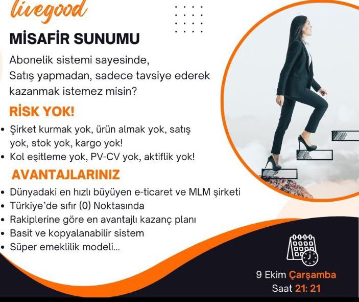 Dünyanın en hızlı büyüyen stoksuz e-ticaret sitesi ve en güçlü kazanç planına sahip ağ pazarlama firmasının online tanıtım toplantısına davetlisiniz.