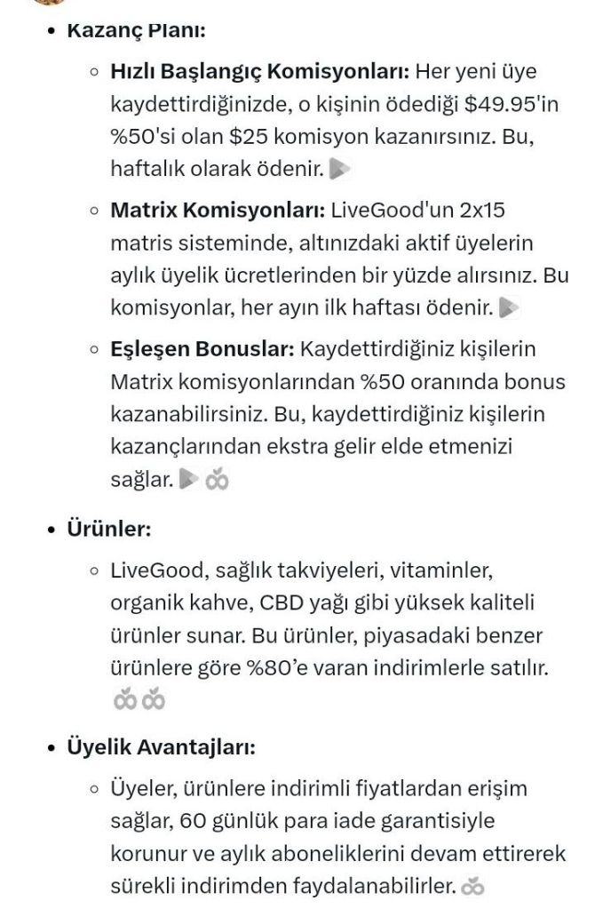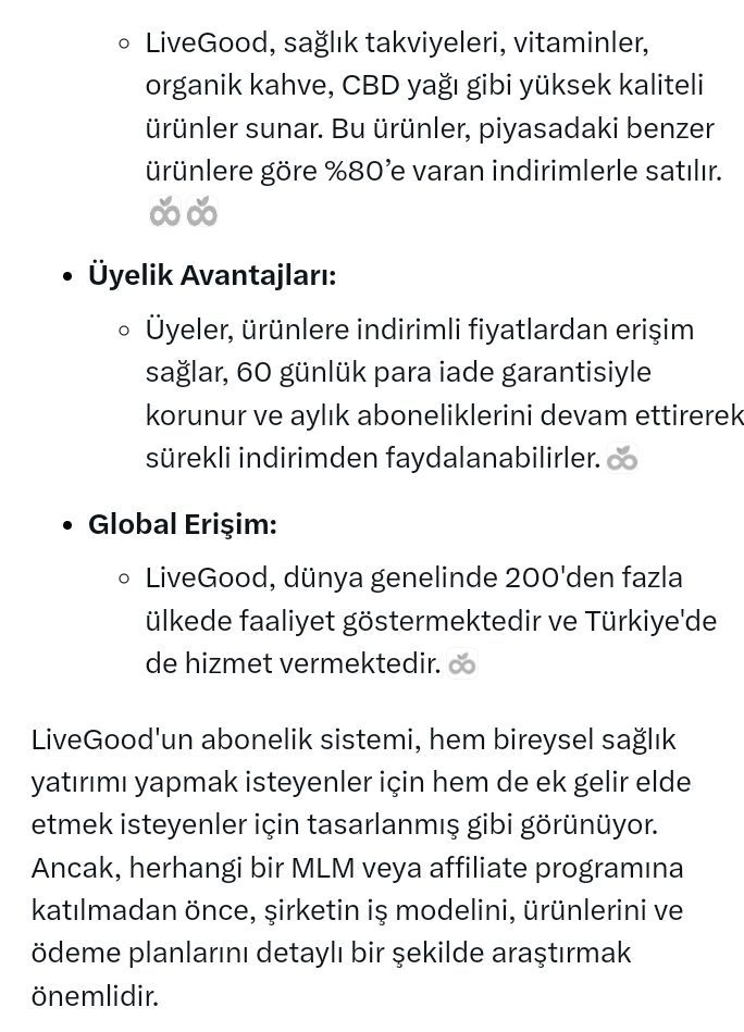 Verdiği özeti sizlerle paylaşmaya karar verdım yani bir çok insan hiç araştırma yapmadan on yargılarını harekete geçiriyor oysaki kısa bir araştırma bile livegood hakkında bilgi veriyor mesela bazılarına direk kazanç planı videosunu veriyorum ben bundan bir şey anlamadım diyebiliyor teknoloji çağındayız araştırma yapabiliriz